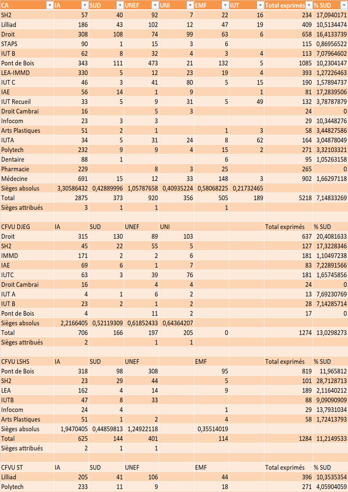 Les listes SUD-Solidaires & Assos obtiennent une élue CA à l’Université de Lille avec 7,15% des voix et un élu CFVU en lettres, sciences humaines et sociales avec 11,2% ces voix.